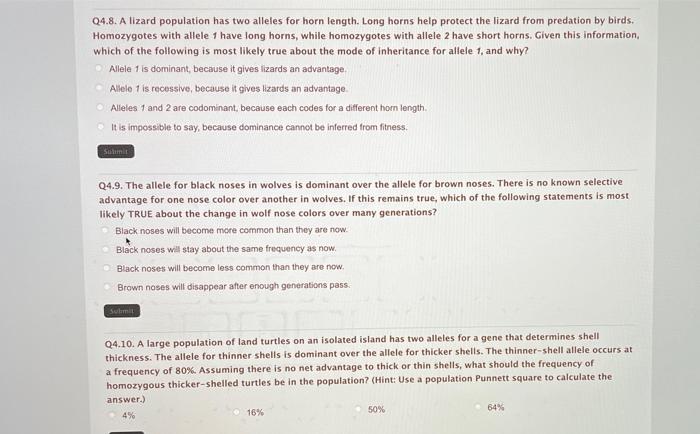 Solved 2 Q4 8 A Lizard Population Has Two Alleles For Horn Chegg Com