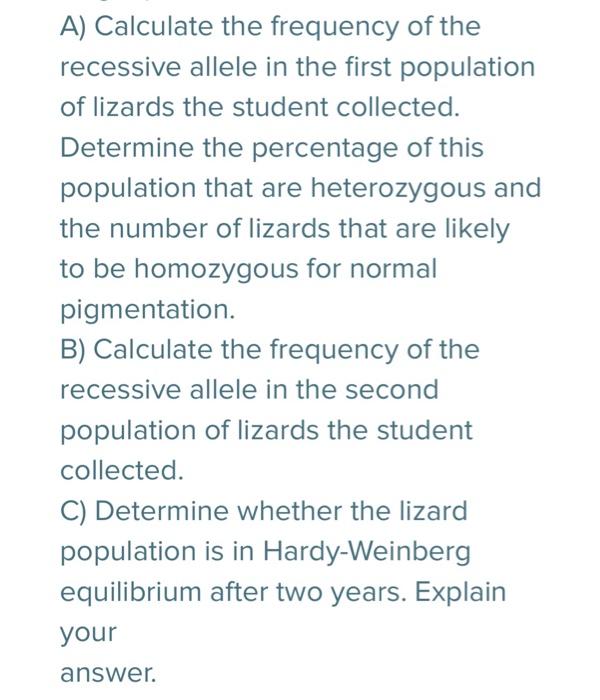 Solved Imagine That You Find A Species Of Lizard That Lives Chegg Com